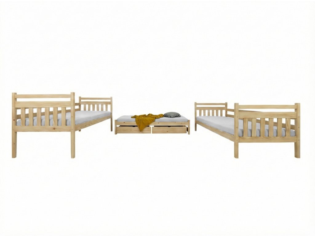 Poschodová posteľ s prístelkou Petra 5 - prírodná